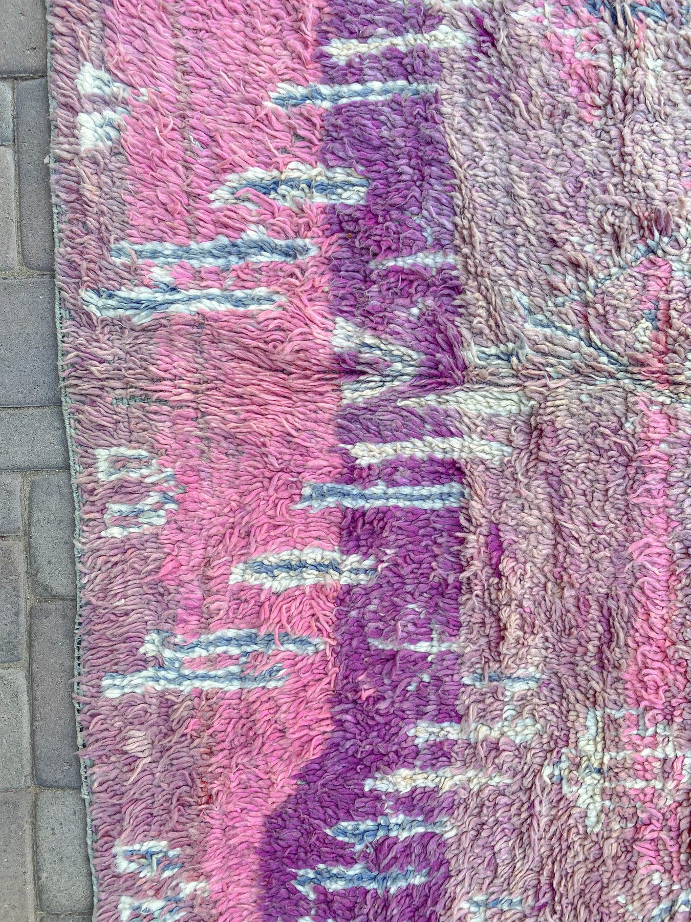 Our beautiful handwoven, one-of-a-kind Gumdrop Vintage Berber Rug was handcrafted in Morocco.